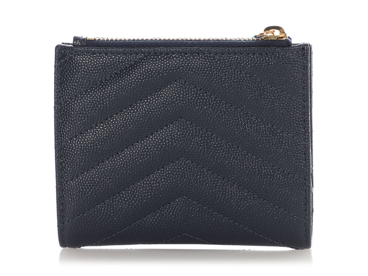Saint Laurent Navy Grain de Poudre Compact Wallet