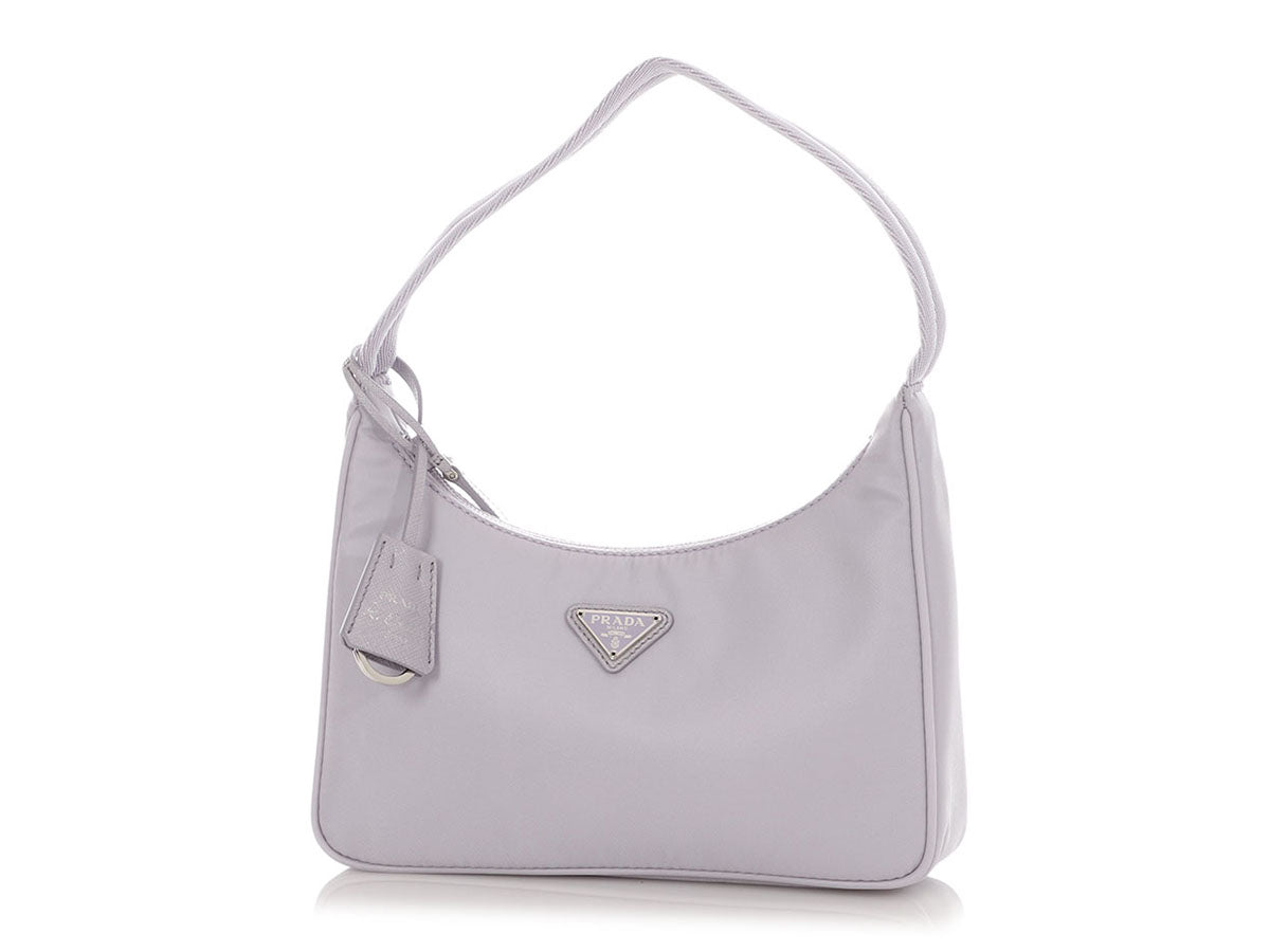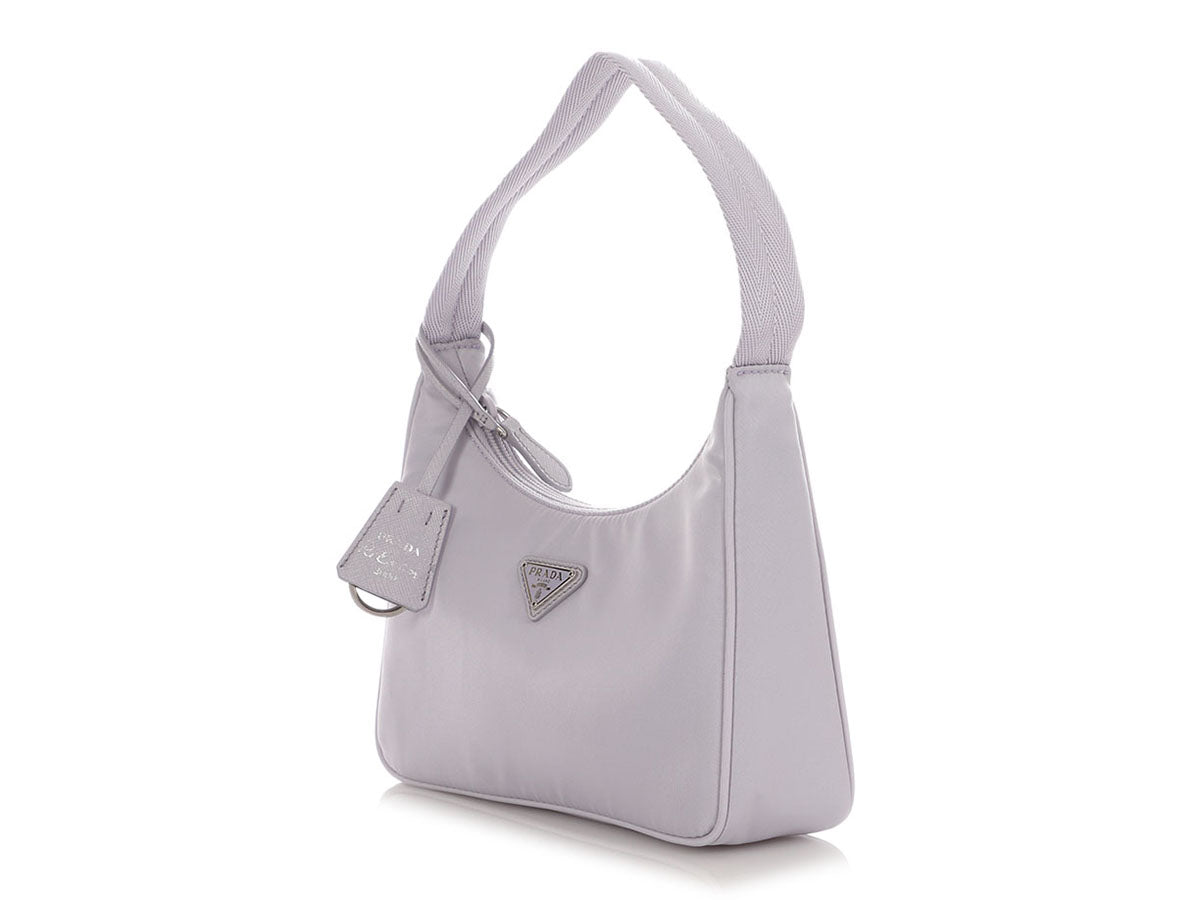 Prada’s Wisteria Re-Nylon Re-Edition 2000 is a cool blend of nostalgia and sustainability! Crafted from pale purple recycled nylon with silver hardware, this petite bag features a triangular logo plate on the front and a tonal webbing strap with a 6.5-inch drop. Unzip the top and you’ll find a pocketless interior lined in purple jacquard fabric. Brand new with a dustbag, box, and clochette, this Re-Edition is really fabulous in this dreamy shade of purple!