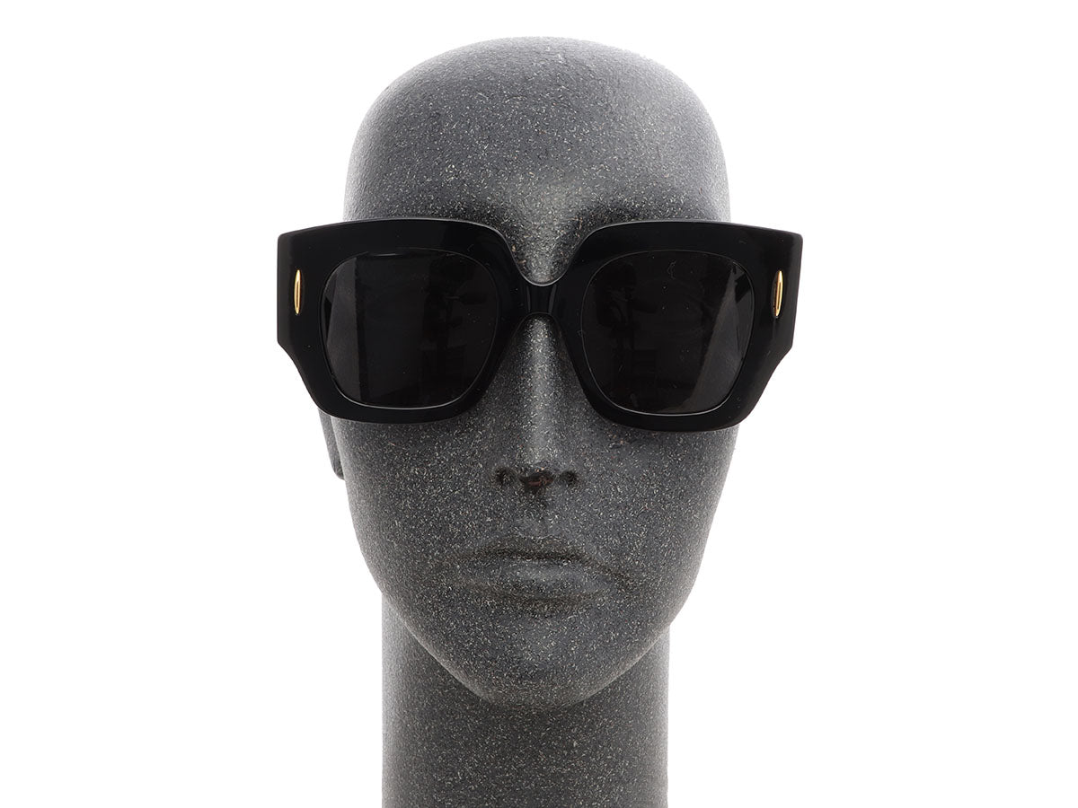 Shade your eyes in chic style with Loewe’s Black Oversized Sunglasses! The opaque black plastic frames hold dark gray lenses and sport gold-tone anagram logos at the temples. In great condition with a case, they have a few light scratches on the frame. Their generous size provides ample and glamorous protection from the sun’s rays!