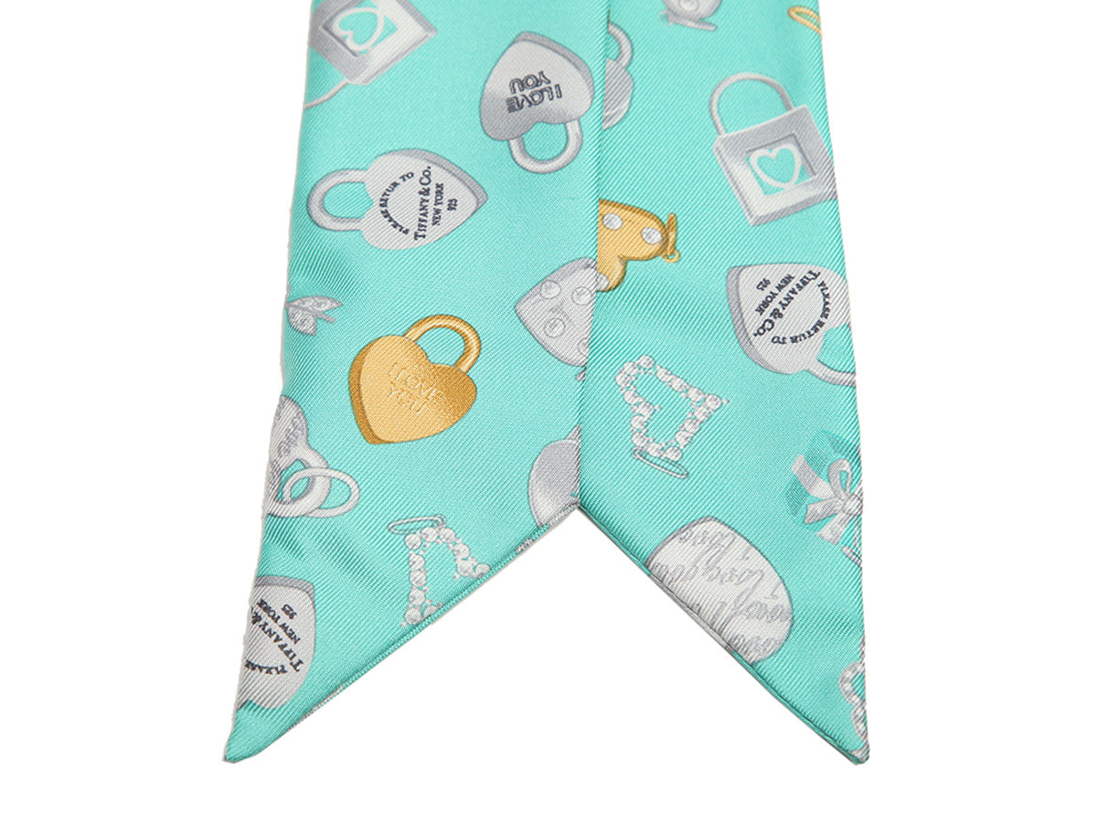 Its name is a bit tricky because I wouldn’t return Tiffany & Co’s Return to Tiffany Hearts Silk Twilly! Made of 100% silk in Tiffany blue, red and gold, it features Tiffany locks, boxes and assorted cute objects. In excellent condition with a box, the care label has been removed, but the brand label is intact. It’s a lovely accent that you’ll never want to part with!