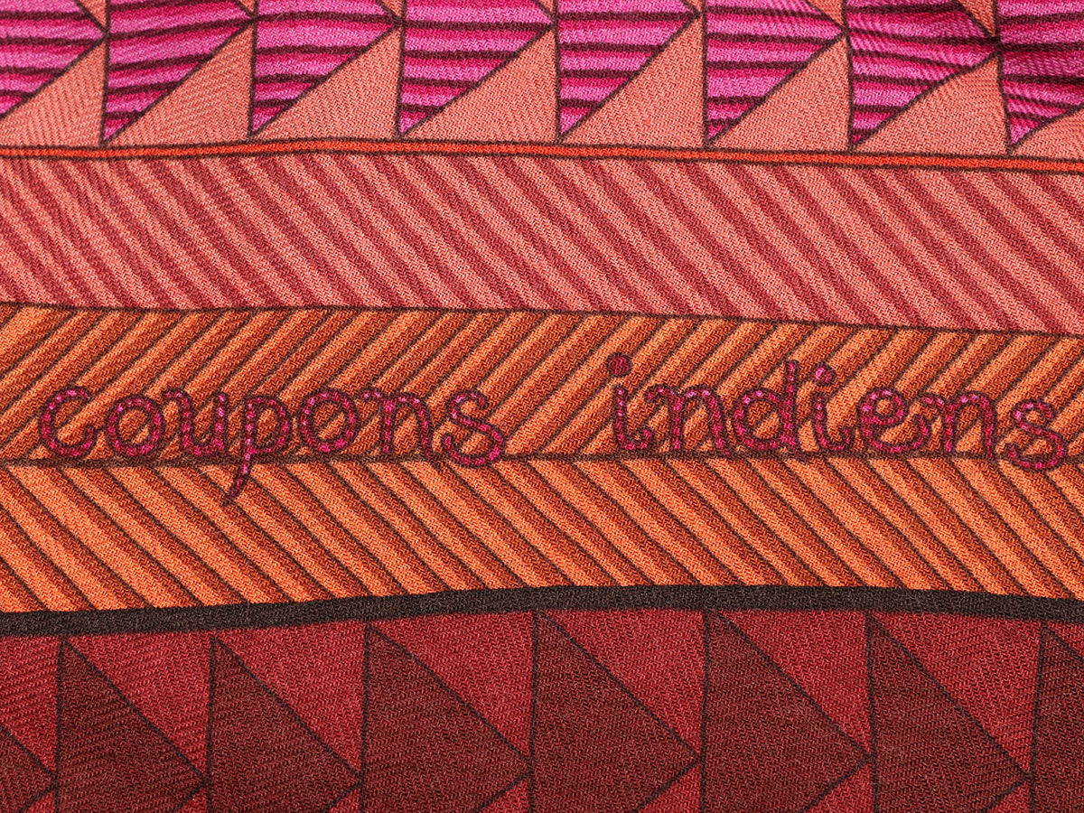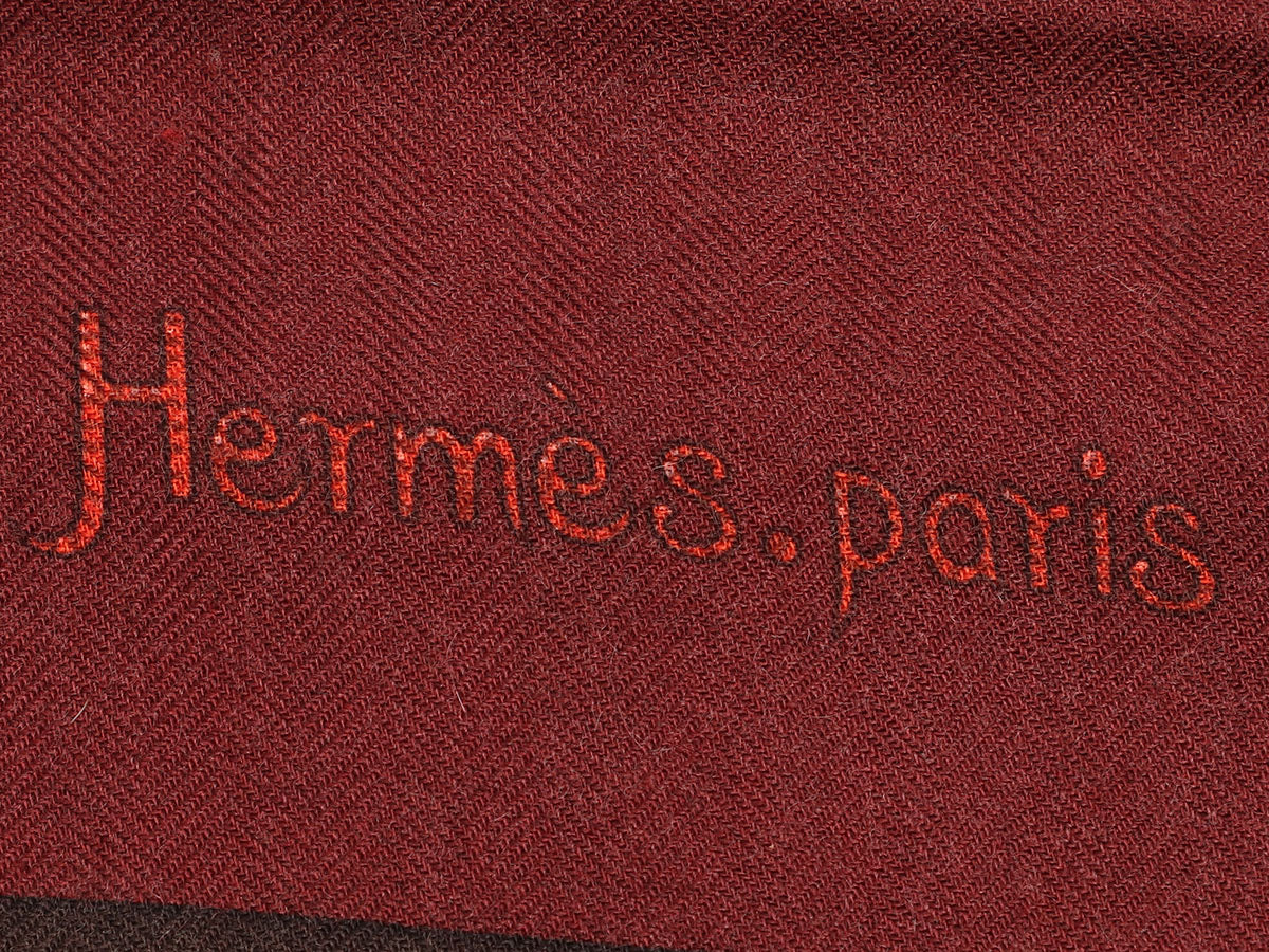 Hermès’ Coupons Indiens Shawl is a luxurious stroll through an exotic locale! Made of 65% cashmere and 35% silk in a colorway of rose indian, brique, and brune, it’s a flowing design inspired by the fabric stands in the markets of India. In very good condition with a box and tag, it has some light pilling and a few tiny white marks throughout. Designed by Alaine Honoré, it’s a fast trip to a foreign land!