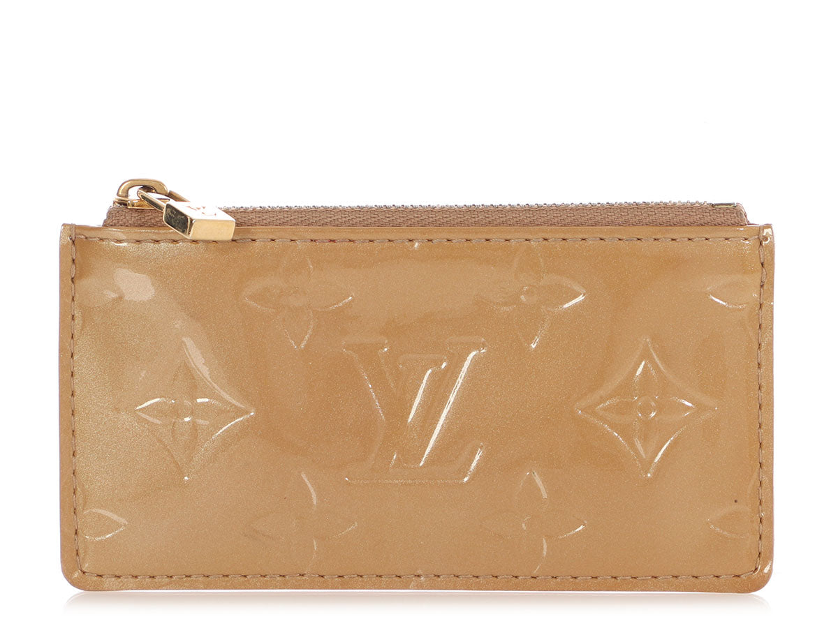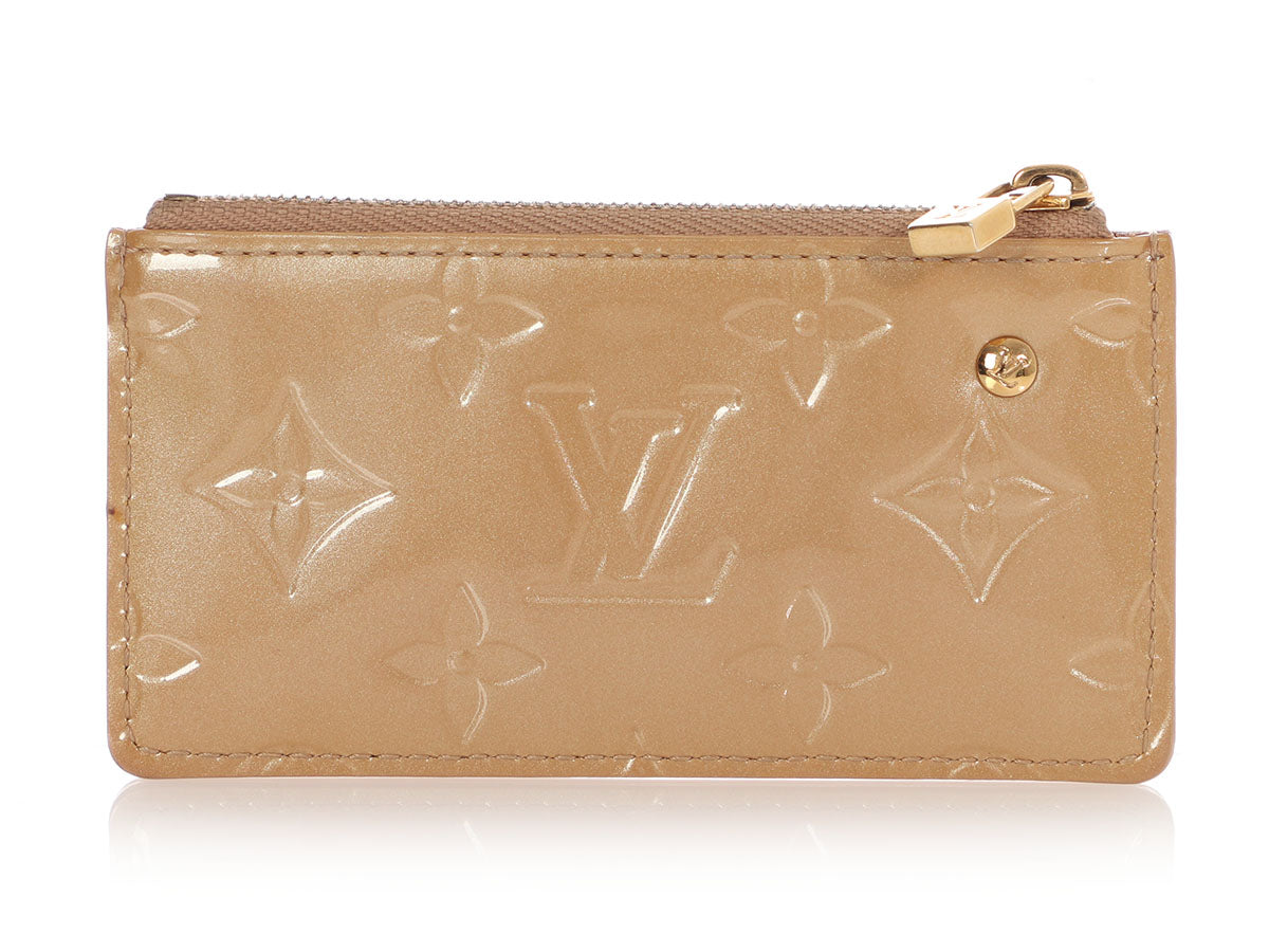 Louis Vuitton’s Beige Perle Vernis Key Pouch is a petite powerhouse for keys, coins, or anything that needs taming in your tote! Made from monogram-embossed pearly beige patent leather with gold-tone logo hardware, it features a top zip closure and a clasp on a chain leash that can be tucked inside or clipped to your bag. In very good condition with a dustbag, it has light marks on the Vernis, scratches on the hardware, and a perfume smell. The interior is lined in beige leather and has no pockets. This is a stylish little helper you’ll reach for daily!