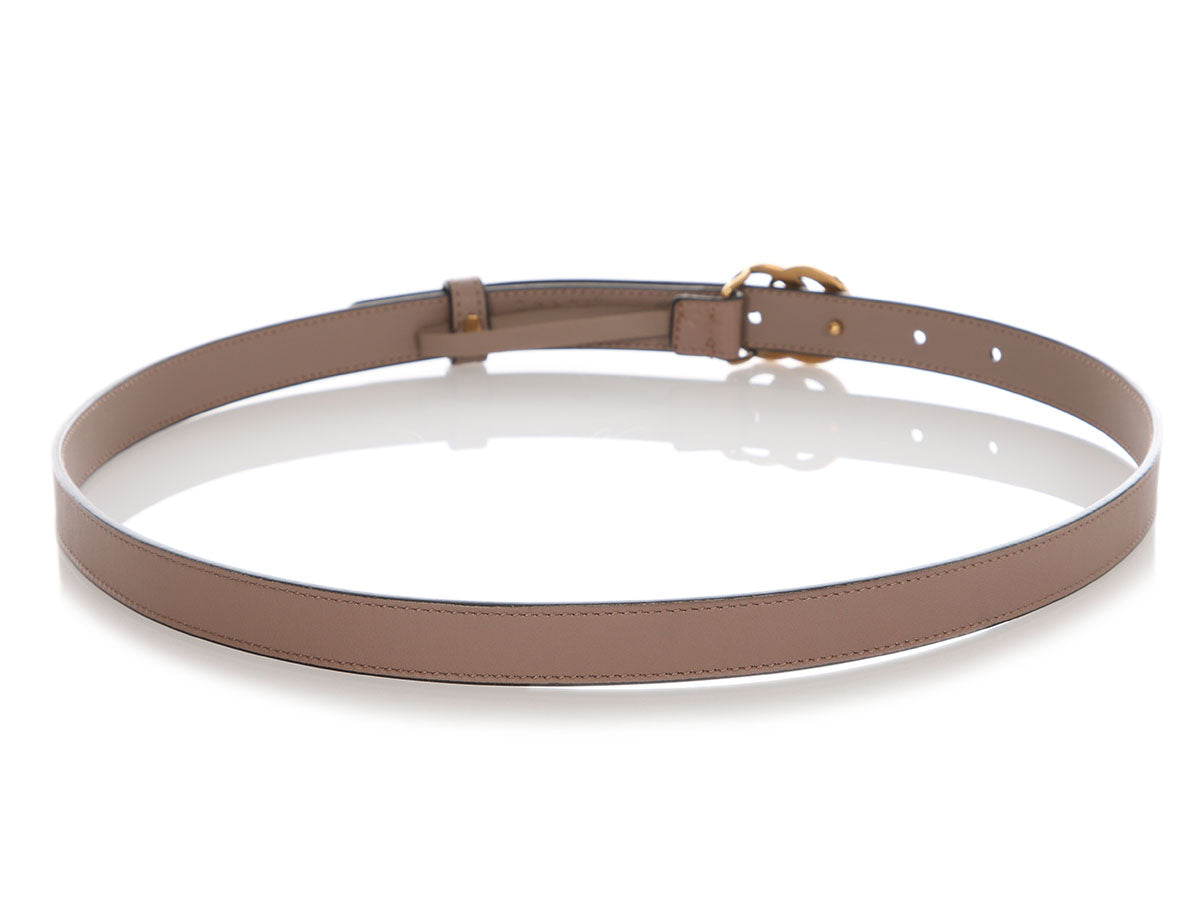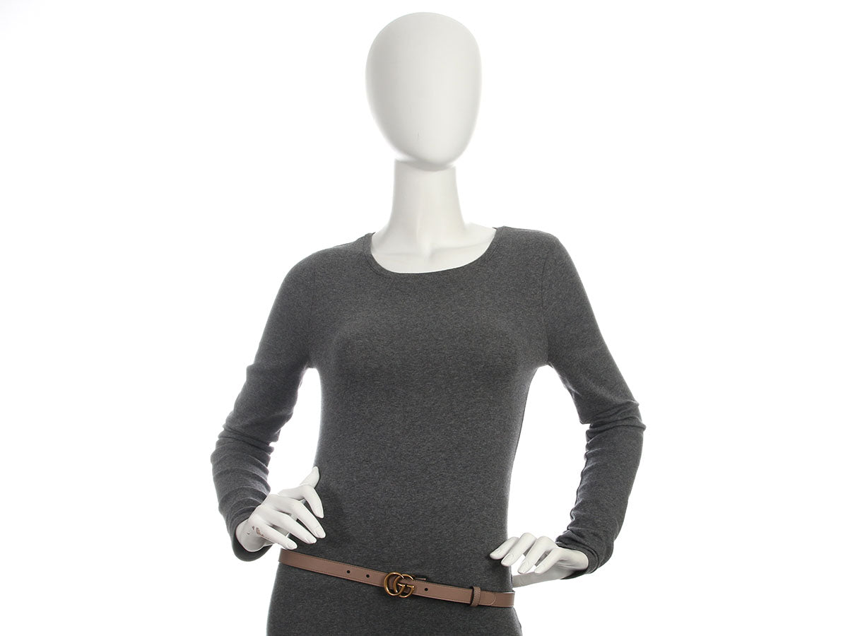 Add a distinctive, delicate accent to your look with Gucci’s Taupe Marmont Skinny GG Belt! A slender belt made of taupe leather, it measures just 0.75 inches wide and is a peg and hole style with a small antique gold GG buckle and five size holes. In excellent condition, it has some faint scratches. Gucci is always ready to finish an outfit with style and sophistication!