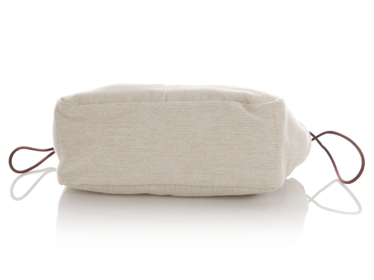 Hermès’ Natural Canvas and Fauve Barenia Fourbi Insert MM instantly turns any roomy tote into an organized haven! Crafted from durable toile chevron fabric with smooth brown Barenia leather trim, it features palladium snaps that let you cinch the ends for a slimmer profile, plus four exterior snap pockets to corral sunglasses, keys, and tech. A softly structured interior keeps larger items upright, while the neutral tan hue pairs effortlessly with almost any bag lining. In very good condition, it has wear on the hardware and inside. This handy insert is ready to bring order (and a touch of Hermès luxe) to your daily carry!