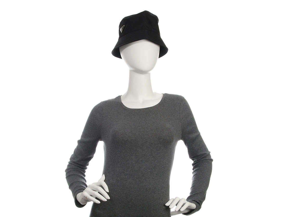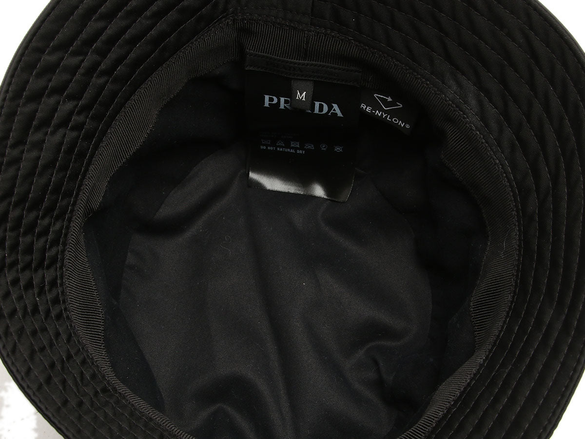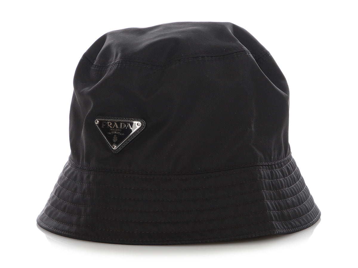 Prada’s Black Re-Nylon Bucket Hat caps off your look with cool street style! Made from 100% recycled polyamide, it features an enameled black and silver triangle logo plate on the front. In excellent condition with some light wear on the inside, it’s a cute, casual wardrobe staple!