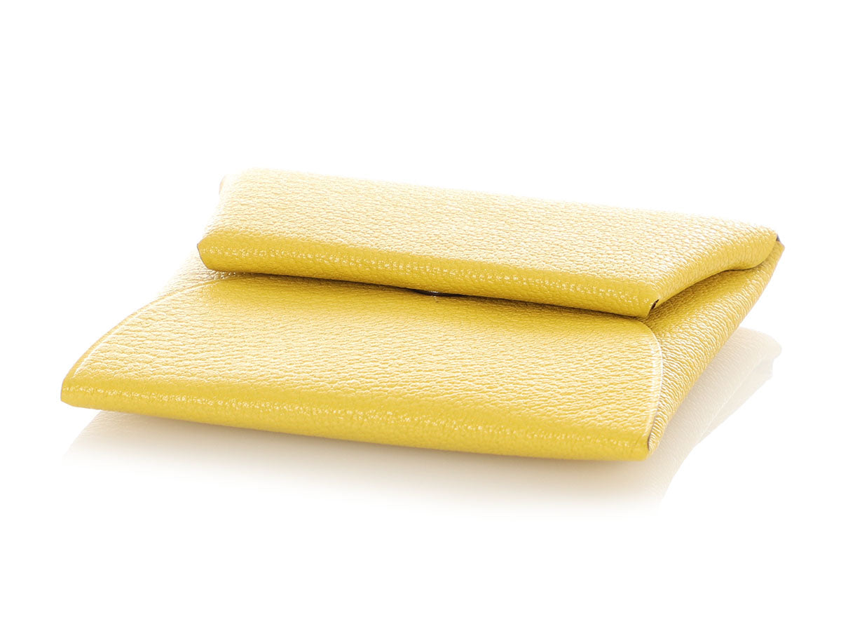 Looking a lot like a note you’d pass in school, Hermès’ Jaune Chèvre Bastia Coin Purse is a palm-sized accessory for coins, keys, safety pins, and the occasional paper clip! It folds in half and secures with a hidden palladium snap that opens to tonal-leather lining. New, never worn, and stamped with a D, it comes with a box. Instead of letting your odds and ends float around in the bottom of your bag, corral them in a Bastia so you know where they are at a moment’s notice!